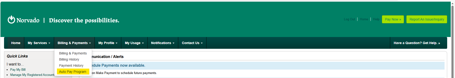 Once you've logged in, select AutoPay Program from the Billing & Payments menu.