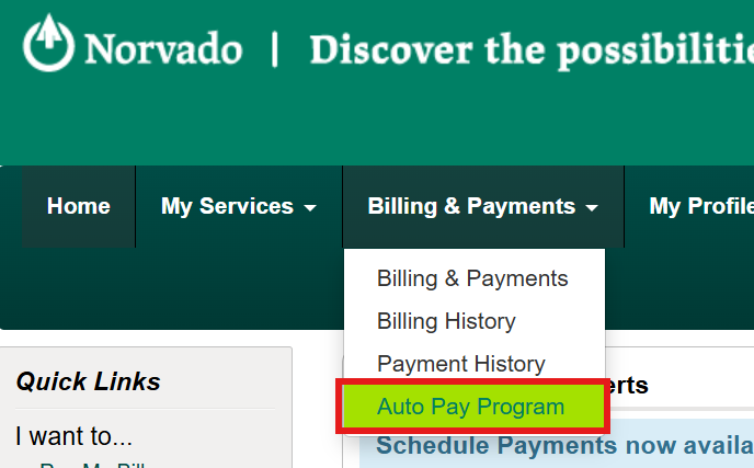 From time to time you may need to update your banking or credit card information that is associated with your AutoPay/EFT subscription with Norvado. You can securely update your account through SmartHub when it's most convenient for you! Here's how: